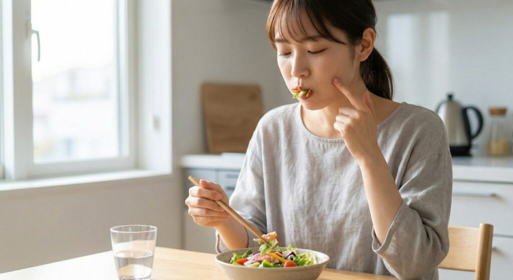 食事の際に一口30回噛みながら素材の味に意識をむけたり、手を洗う際の水の温度にだけ意識を向けるなど、思考ではなく「体の感覚」に集中する時間を1日1回は必ず作ってください。感度の低下は、脳の過活動によって意識が身体感覚から切り離されていることが原因になる場合が多いため、身体の微細な感覚を拾い上げる実践的な訓練になります。